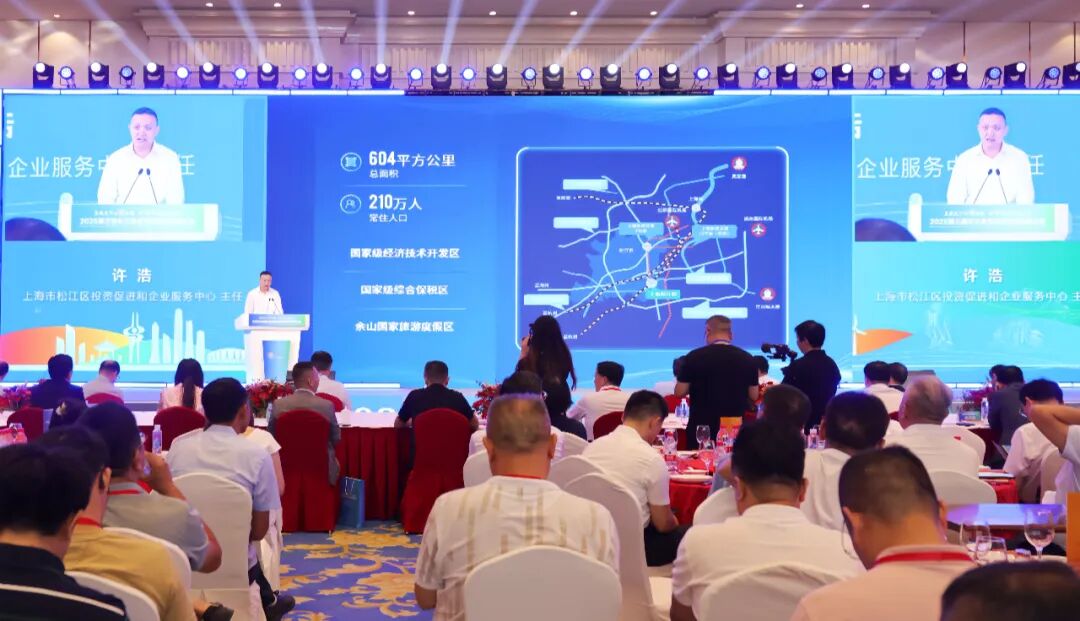 上海市松江区投资促进和服务中心主任许浩就松江区的区位优势、产业政策及营商环境作了精彩推介。