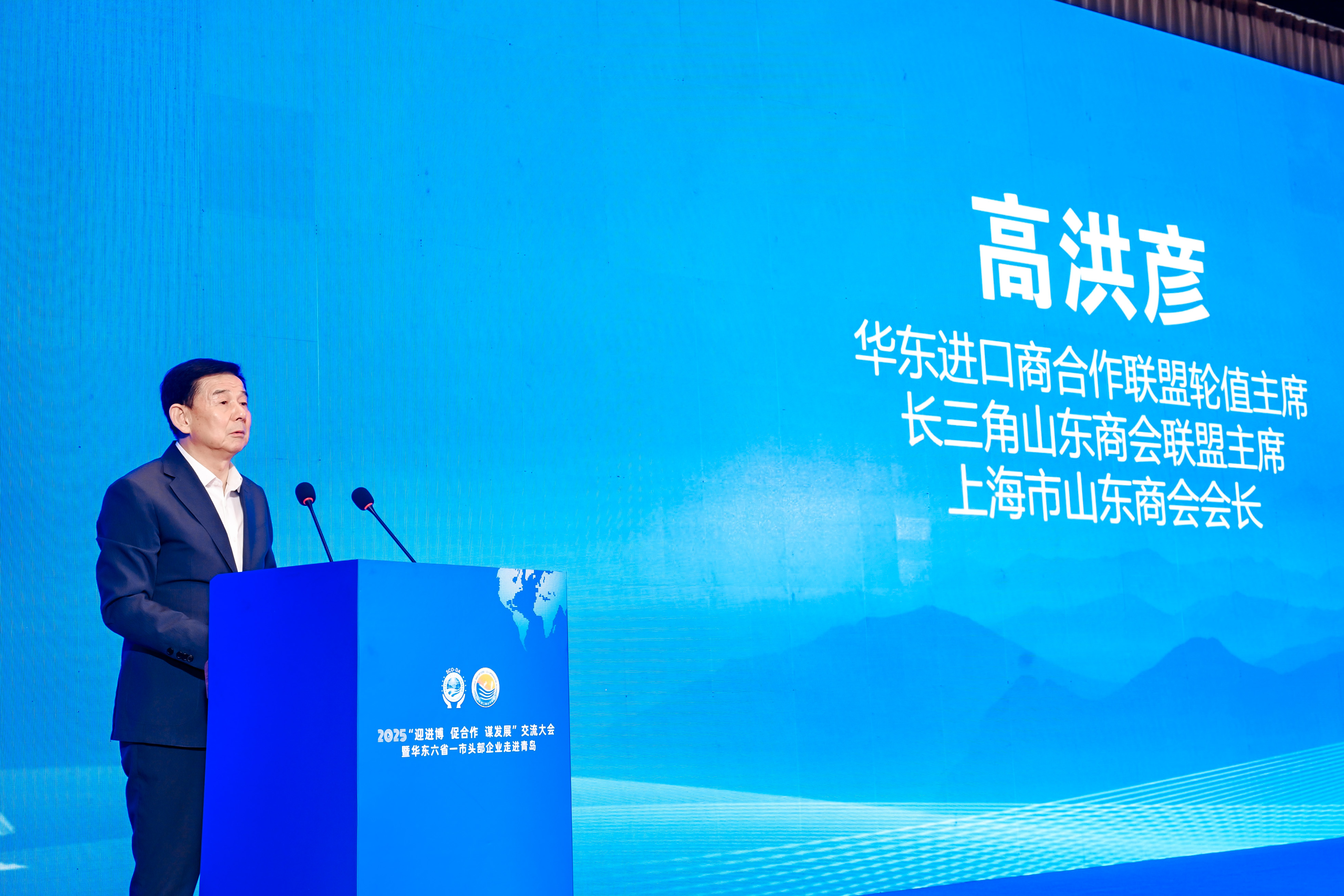 9月25日,2025“迎进博、促合作、谋发展”交流大会暨华东六省一市头部企业走进青岛活动,在山东省青岛市上合示范区成功举行。青岛市委常委、上合示范区党工委书记张新竹,上海市人民政府合作交流办公室副主任强鹏程,山东省人民政府驻上海办事处党委书记、主任张义英,华东进口商合作联盟理事长、上海进出口商会会长、东方国际(集团)有限公司党委书记、董事长兼总裁季胜君,华东进口商合作联盟2024-2025年度轮值主席、长三角山东商会联盟主席、上海市山东商会会长高洪彦等领导出席并致辞。大会特邀中国国家创新与发展战略研究会学术委员会常务副主席、重庆市原市长黄奇帆就“新全球化背景下内外贸一体化的发展趋势研判”作了主旨演讲。
